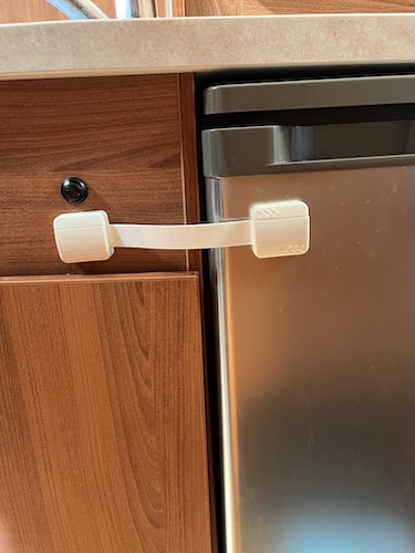 In order to stow away two camping chairs and a camping table, I fitted three PVC drain pipes under the bed. Maybe a little heavier than I had in mind, but very easy to use.