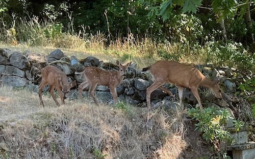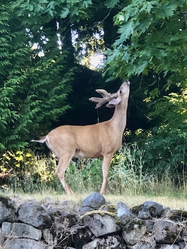 To our surprise Sylvia's brother Paul and his partner Annalies were also in Nanaimo for a few days. We met for lunch at Gabriel’s Café. When we came home, there was a stag at the front door waiting for us.