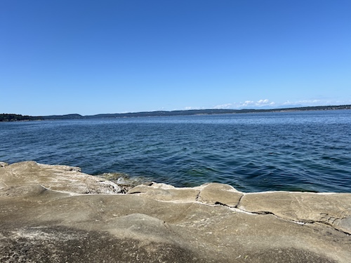 A trip to Qualicum beach was planned. First stop: Nanoose Bay to have a look at the beach and the adjoining RV site. Nice views but the gravel is not very cosy!