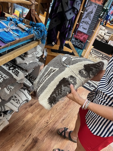 We are referred to the bookshop where they do have one of the two books on Cowichan knitting Sylvia has been looking for.