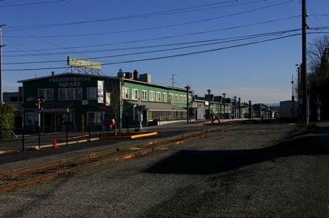 Het oude vrachtstation, nu Freighthouse Square, is tegenwoordig een gezellige verzameling winkeltjes en eettentjes. Zoals in het hele Noordwesten ligt de nadruk nogal op New Age.