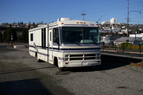 De gemiddelde camper is wat groter dan z’n Europese collega. Hierin wonen mensen uit een andere staat die in Tacoma werken.