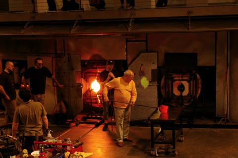 Italian maestro Lino Tagliapietra giving a masterclass, an attraction both for his students and for the museum visitors.