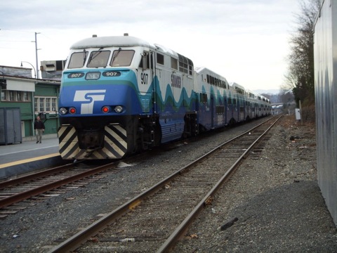Op minder dan 100 m van het hotel is het eindpunt van de Sounder, de forensentrein die tussen Tacoma en Seattle rijdt. Helaas (voor ons) beginnen de Amerikanen erg vroeg met werken...